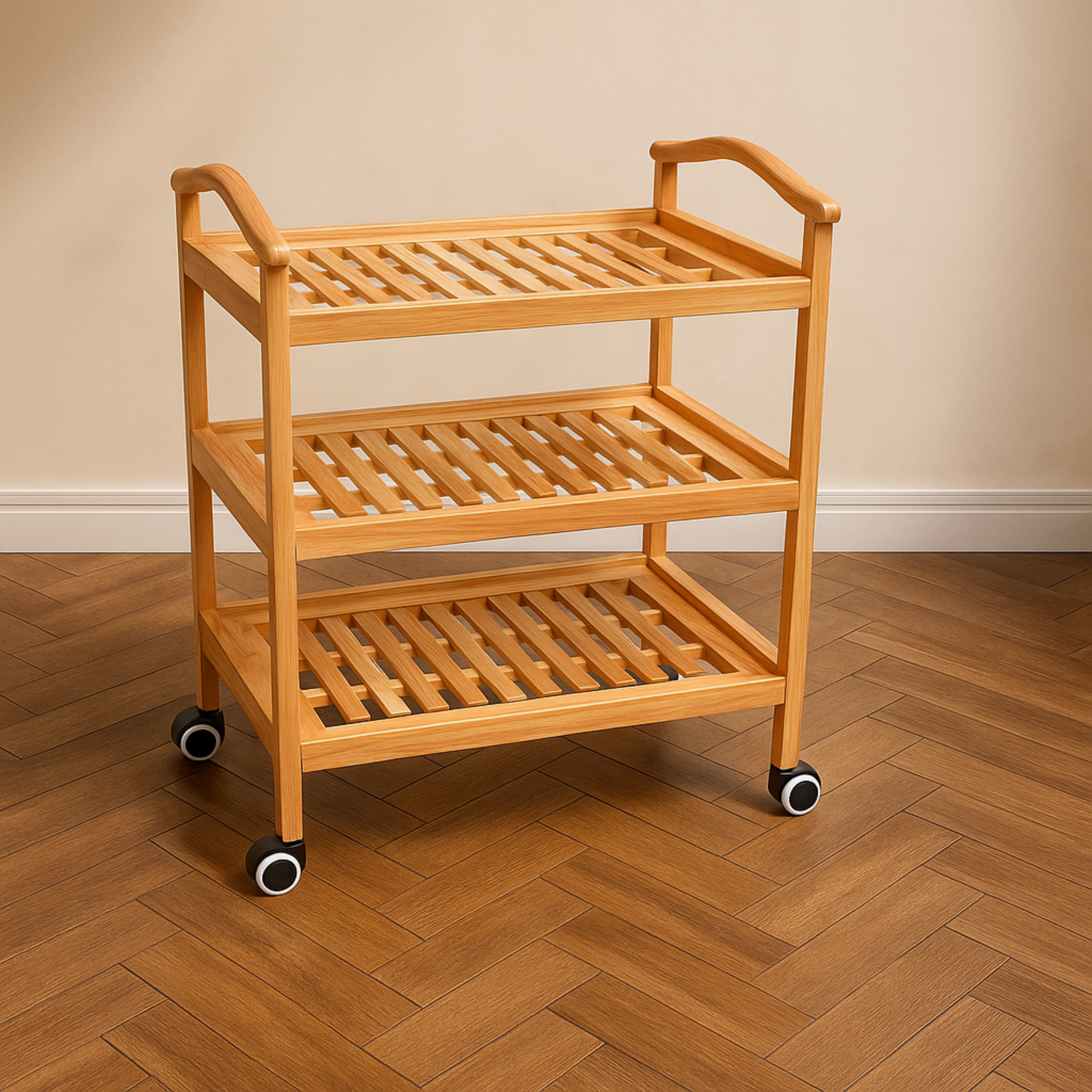 With three spacious slatted shelves, this trolley provides ample room to store kitchen supplies, toiletries, towels, or decorative items. The smooth-rolling caster wheels make it easy to move from one room to another — offering effortless mobility even when fully loaded. Whether you’re serving guests, storing essentials, or displaying decor, this wooden trolley is your all-in-one solution for modern, clutter-free living.