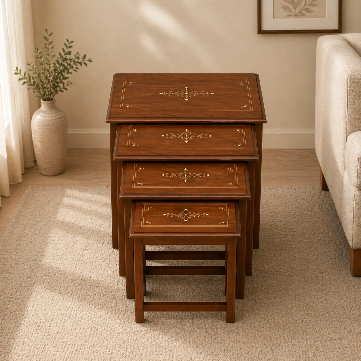 Premium Handcrafted Wooden Nesting Tables – Inlay Design | Set of 4 | Traditional Decorative Side Tables
