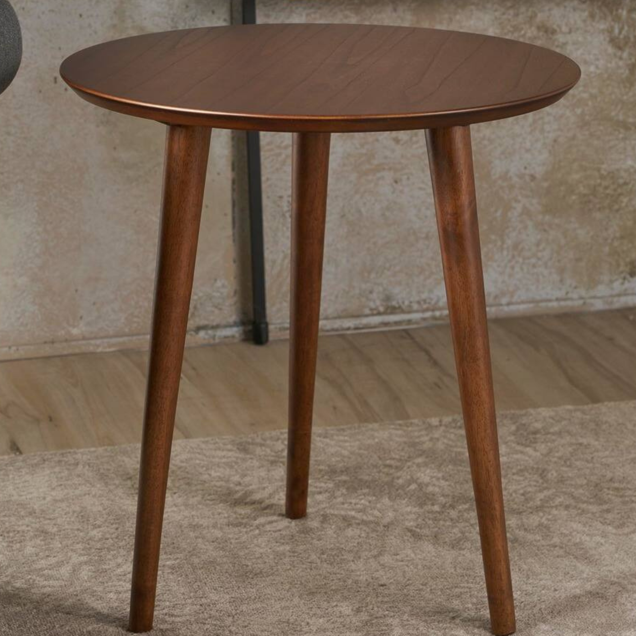 Give your home a modern and elegant upgrade with this beautifully crafted Round Solid Wood Side Table. Designed with a smooth walnut-finish tabletop and tapered solid-wood legs, this piece brings timeless style and reliable strength to any space.